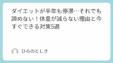 たとえ停滞していても、前に進んでいるのは確かです。長い目で見て、「一生続けられる健康的な生活」を目指すことが、リバウンドしない本当のダイエットになります。